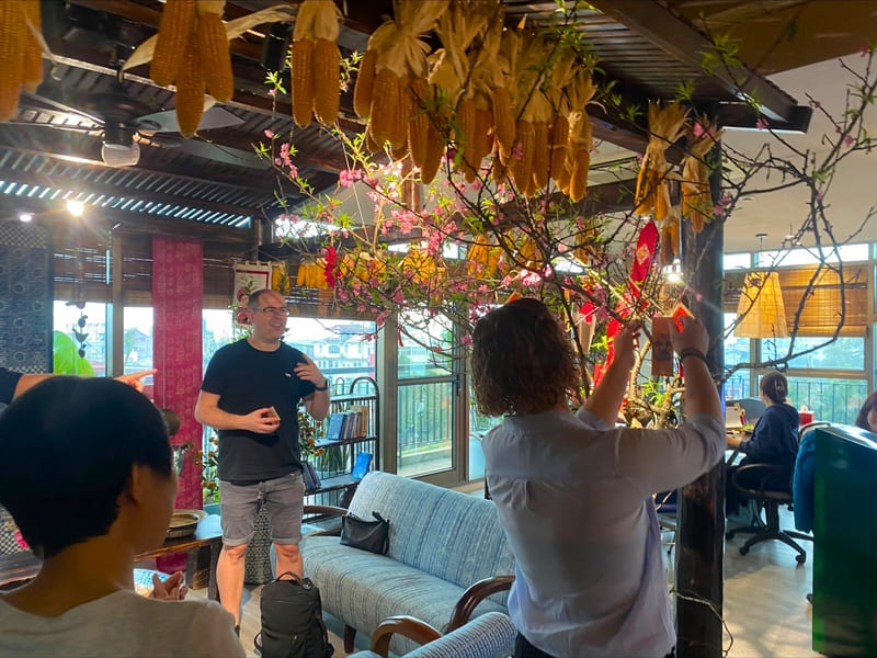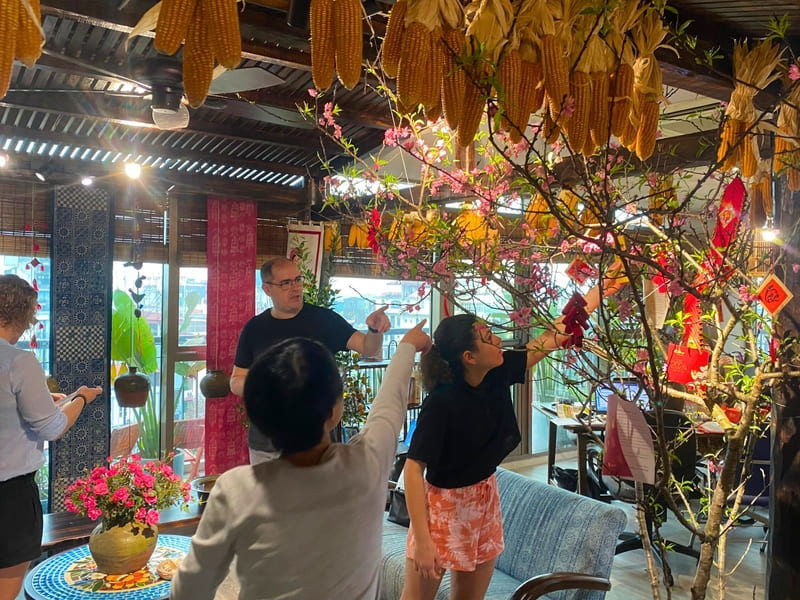 February 15, 2024 - Colorful envelopes, symbols of luck and prosperity in Asian tradition, are delicately suspended from the beautiful blossoming branches of peach trees in our premises. We warmly welcome the BERGER family and their friends, who inaugurate the Year of the Dragon as our first travelers of the lunar year! Vietnam Discovery extends its sincerest wishes to all our travelers, partners, and friends for a lunar new year filled with happiness, joy, and extraordinary adventures!