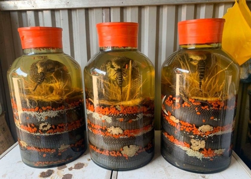 And there is a reality in the countries mentioned that the very common understanding is that reptile wine is not just a drink, but these wines are already a manifestation of endurance. Additionally, wines soaked with many different kinds of animals can also reflect the economic status of the owner. This is why it should not be surprising when traveling to countries like China, Vietnam, or Thailand to see reptiles such as snakes and others found inside wine bottles.