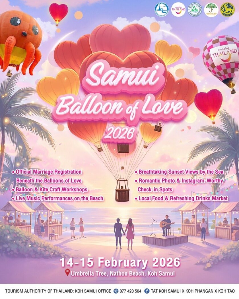 On the island of Koh Samui, the celebration of love rises to new heights with hot air balloons, spectacular sunsets, and magical photo spots. Live music, local cuisine, and creative activities complete this festival, highly popular with couples.