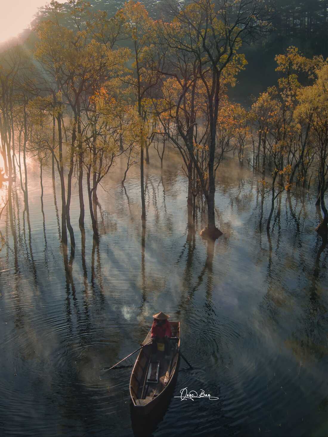You can rent a wooden boat for around 150,000 VND per person by the lake, as it's a peaceful way to take in the mirror-like reflections and soak up the calm, mystical atmosphere.