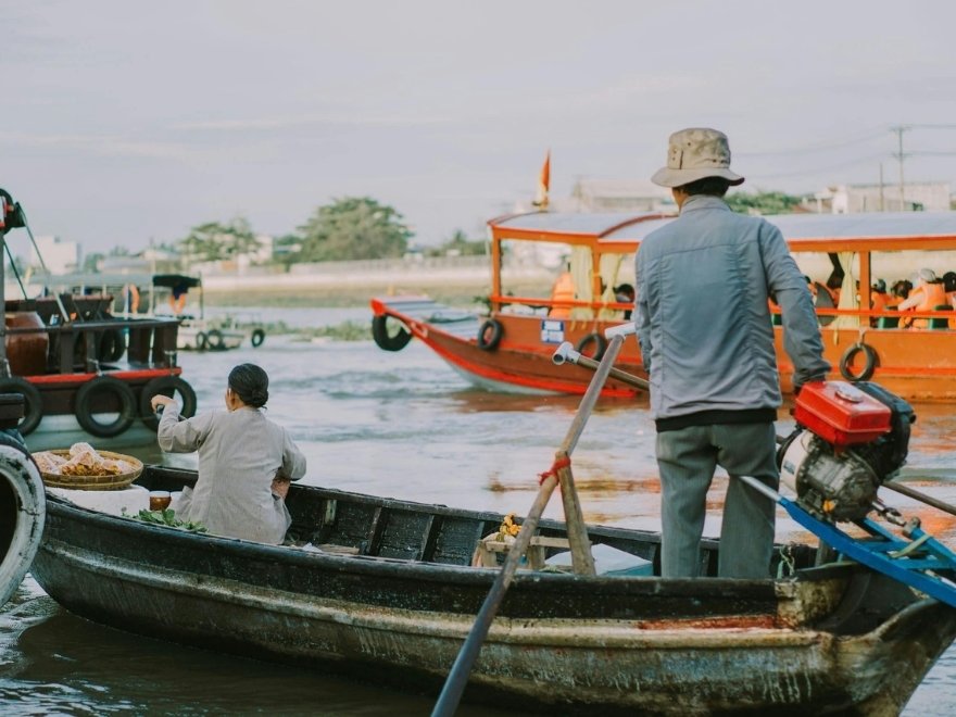 While motorbikes are common in cities, life in the rural delta is defined by its canals. Boats and ferries remain the primary tools for moving everything from sand and rice to seasonal fruit. In many remote areas, these waterways serve as the only practical roads for daily commerce.