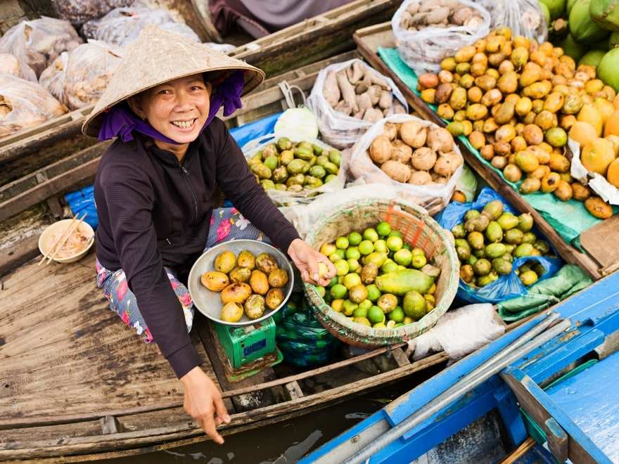 The combination of tropical heat and rich river sediment makes the delta the primary fruit producer of Vietnam. Orchards throughout the region produce mangoes, rambutans, and pomelos year-round.