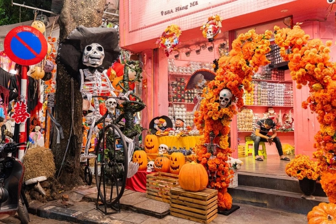 In Hanoi, the Hang Ma district in the Old Quarter becomes the heart of the celebrations. Stores transform into theme parks, filled with colorful costumes and spooky accessories.
