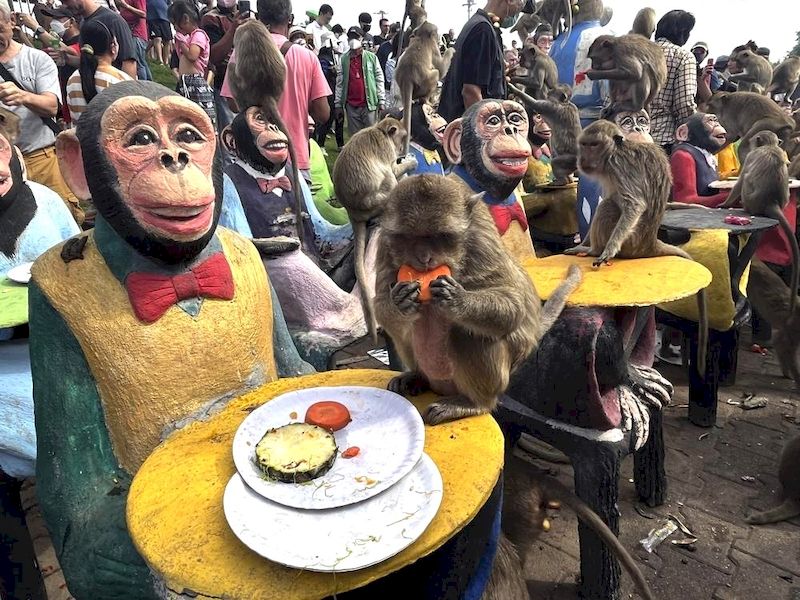 Si estás planeando reservar vuelos a Tailandia para viajar en la última semana de noviembre, no te puedes perder el Festival de los Monos de Lopburi. Se lleva a cabo en Lopburi, que se encuentra a 150 km al norte de Bangkok. Según una leyenda, un rey construyó esta ciudad con la ayuda del dios mono Hanuman, y la gente considera que los monos son descendientes de este dios, por eso se celebra esta fiesta para mostrar la gratitud y respeto hacia él.