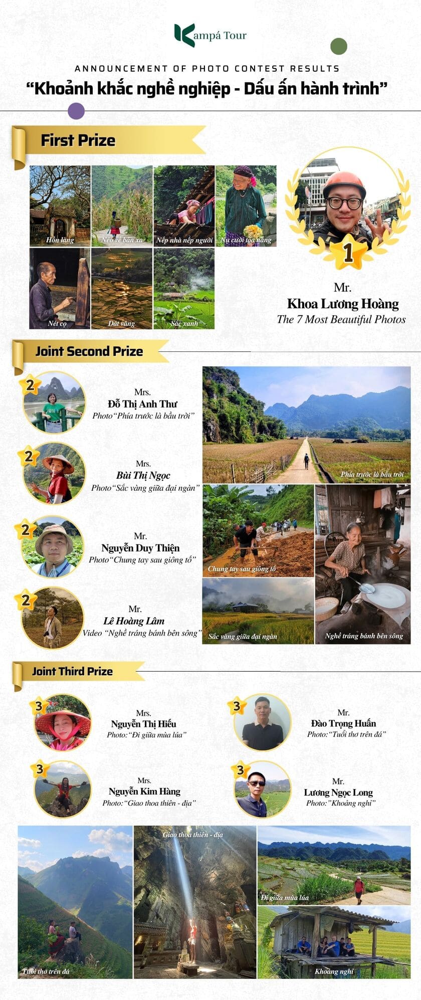 Every year, Kampá Tour’s internal photo contest generates great enthusiasm among our talented guides. This year, with the theme “Khoảnh Khắc Nghề Nghiệp – Dấu Ấn Hành Trình” (Professional Moments – Traces of the Journey), the contest brought together more than 5,000 outstanding entries. After a rigorous selection process, we are proud to unveil the 15 most remarkable photos.