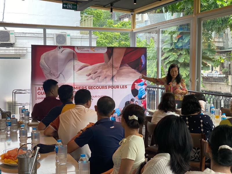 June 19, 2024 - Emergency first aid is essential, both in daily life and during travels. Each year, thousands of travelers entrust us with organizing their trips, guided across the country from mountain peaks to sea shores and from urban hustle to rural tranquillity. Aware of the importance of first aid, we organized a dedicated workshop for our tour guides. This workshop covered vital skills such as cardiopulmonary resuscitation (CPR), fracture treatment, and airway obstruction management. Participants engaged in simulations and role-playing exercises, approaching the training with seriousness. Thanks to this training, our entire team, especially our guides, is now perfectly prepared to accompany you on wonderful adventures in complete safety.