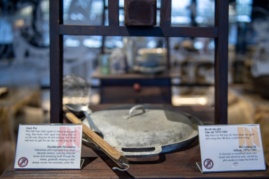 Among the showcases, you can discover ancient pots, stone mortars, raw spices, as well as dictionary pages where the word "pho" first appeared. Over 200 items are displayed, accompanied by archives and documents tracing the diversity of pho across the three regions of Vietnam.