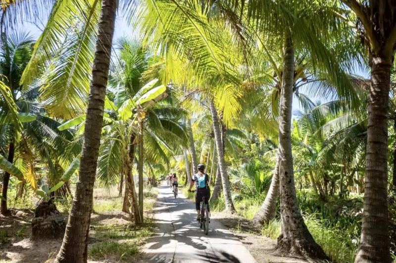 Ben Tre, apodada la “tierra de los cocoteros”, es un lugar tranquilo y apacible donde realmente puede sumergirse en la naturaleza vietnamita. Al pedalear por caminos sombreados por palmeras, plantaciones de coco y arrozales verdes, vivirá una experiencia auténtica, lejos del turismo de masas.