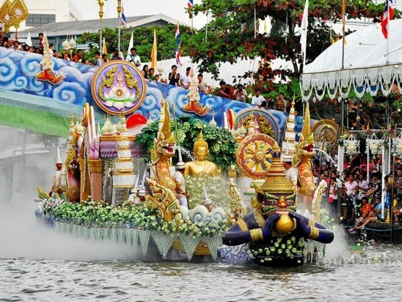 Highlights include the boat procession contest in traditional and local categories, with winners receiving the Royal Trophy, alongside a parade of decorated boats competing for prizes. Visitors can also take part in the Tak Bat Devo almsgiving ceremony.