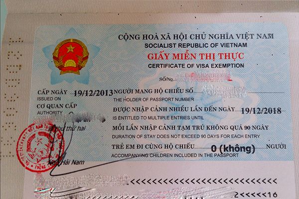 Those entering Vietnam on a visa waiver stamp will get the exemption stamp as follows on their passport: